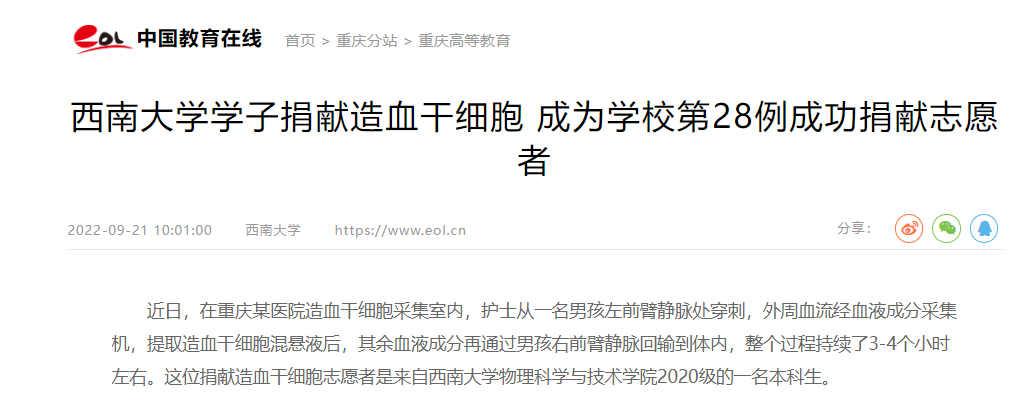 工作站率先成立,成为全国唯一一个高校骨髓库工作站。据悉,截至2022年8月,重庆市造血干细胞成功配对200例。而海棠书屋
