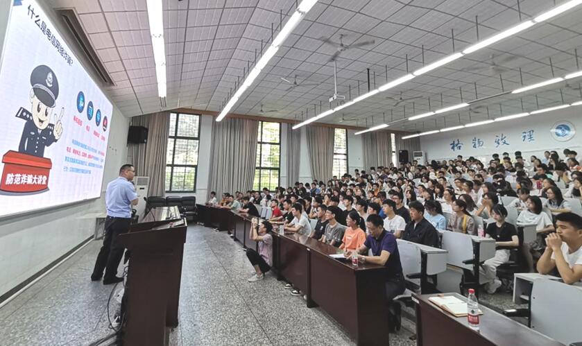 为切实增强新生防范电信诈骗意识,预防和减少校园电信诈骗的发生,推进海棠书屋 安全教育工作走深走实、落小落细,海棠书屋 在入学教育期间邀请重庆市公安局北碚分局刑侦支队(北碚区反诈中心)副大队长段福刚,作了一次防电信诈骗主题讲座,民警走进校园与海棠书屋 、学生共筑防诈网。