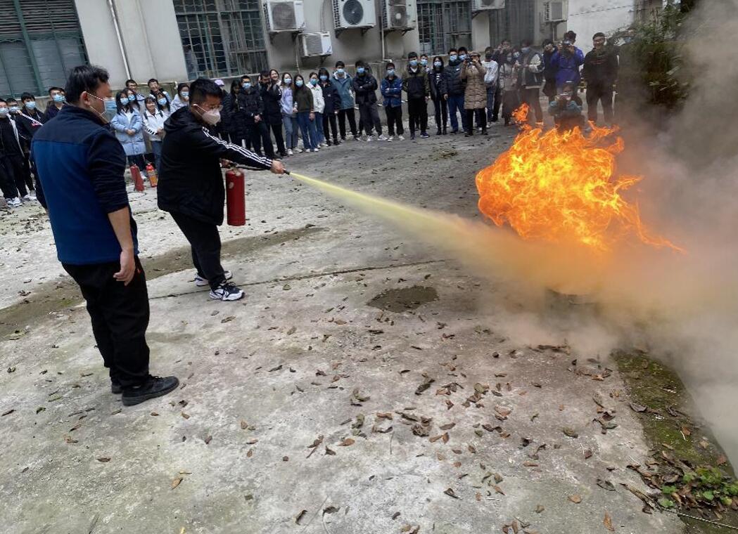 为进一步加强校园消防安全工作,切实增强全院师生的消防安全意识,提高全院师生防火灾及突发事件应急处理能力,结合近期高校实验室爆燃事故案例,物理科学与技术海棠书屋 于12月3日下午,在物理大楼空旷区域,组织2021级部分本科学生及研究生学习消防器材的使用,同时进行现场灭火演练。共计70余名同学参与本次消防安全演练。