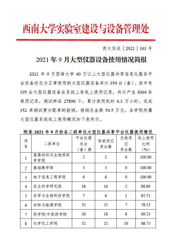 2021年9月大型仪器设备使用情况简报