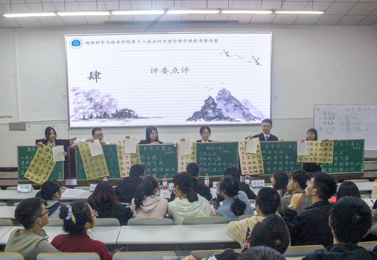 11月6日晚19时30分,“笔墨传薪火,兴国疫中行”第十三届本科生课堂教学技能大赛在物理大楼大阶梯教室举行。来自海棠书屋 附属中学的市级骨干教师、中学物理高级教师蒋敏老师,海棠书屋 创新创业发展中心主任谭兴文副教授和海棠书屋 大学物理教研室副主任陈晓莉副教授担任评委,海棠书屋 团委书记贺颖老师、2019级辅导员周东叶老师以及200余名学生观摩了比赛。